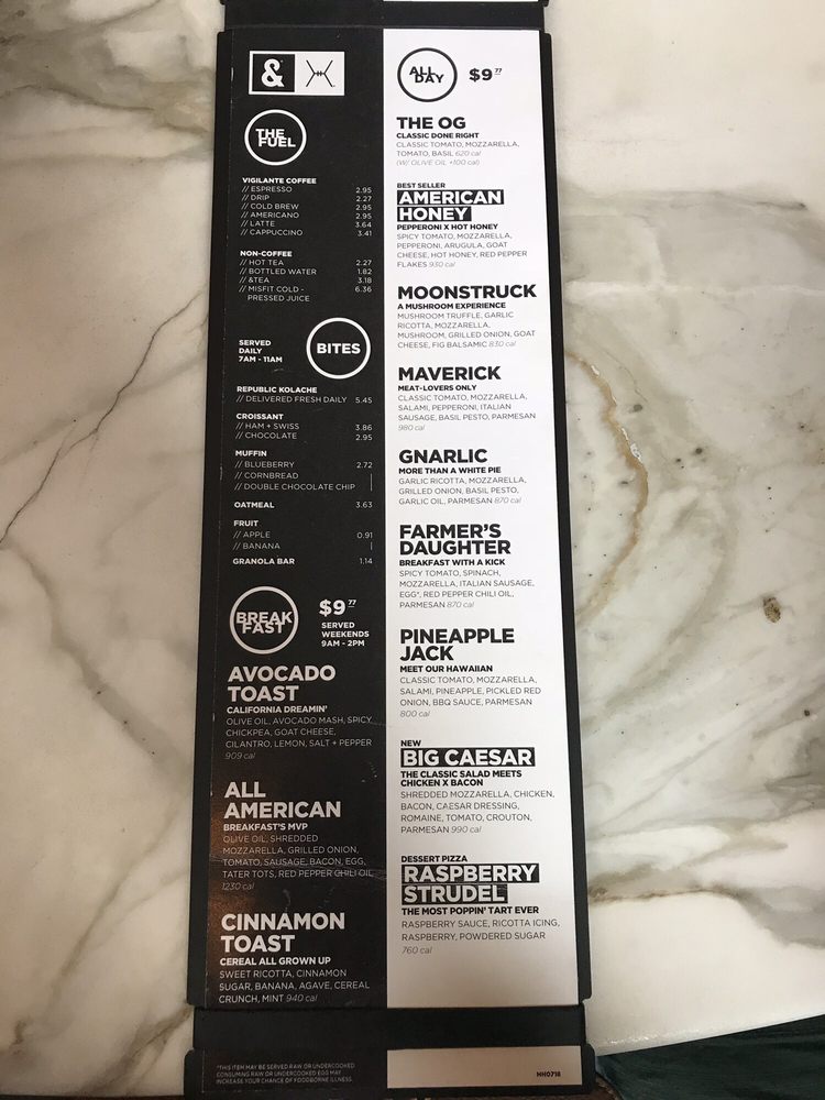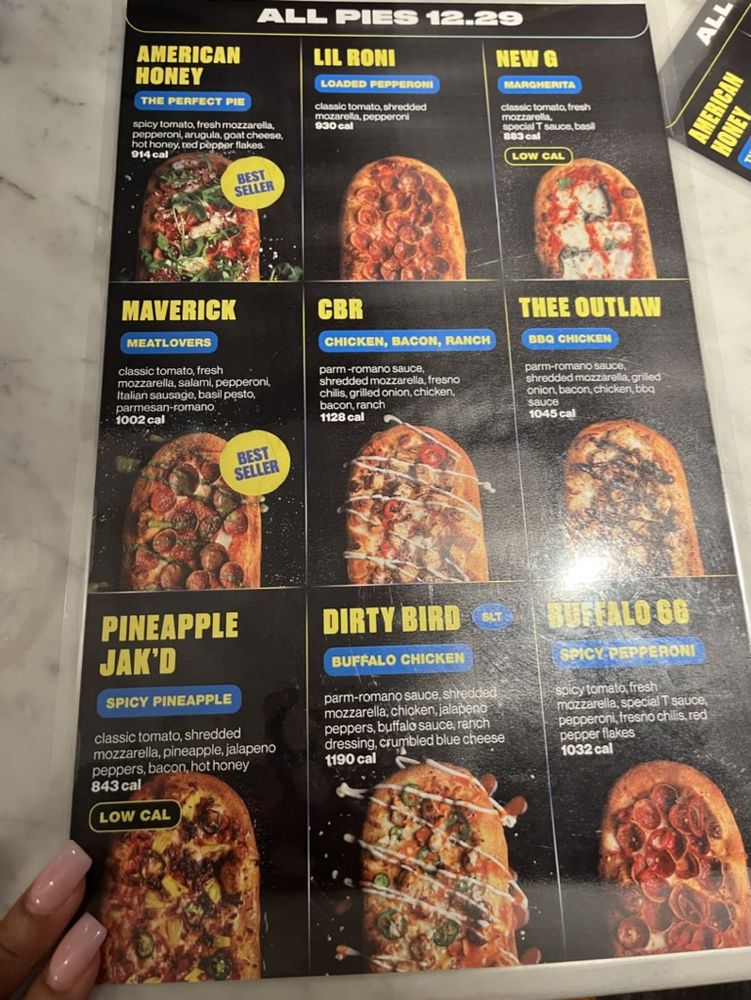 Pepperoni x hot honey. Traditional, spicy tomato, mozzarella, pepperoni, arugula, goat cheese, red pepper chili flakes, hot honey. (954 cal)